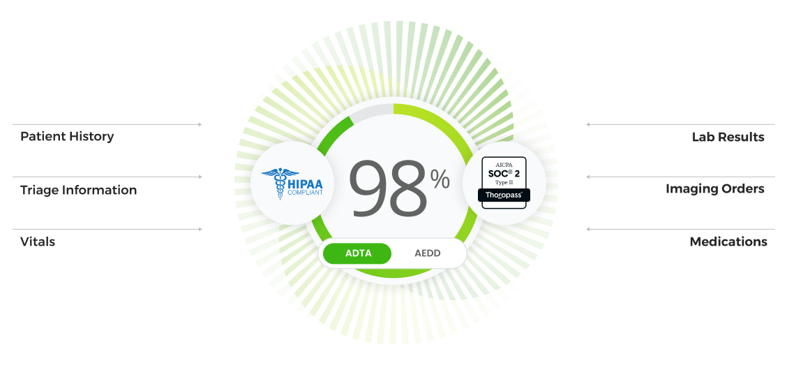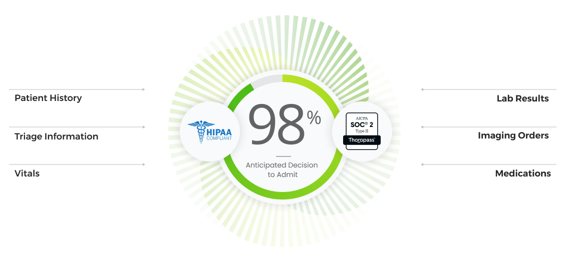 Following a SOC2 framework and HIPAA compliance, the Choreo-ED suite of solutions integrates directly into a hospital’s EHR system. As patient data, physician orders and lab results are recorded, the model utilizes real-time inputs and rich historical data to generate a dynamic anticipated admission or discharge score.