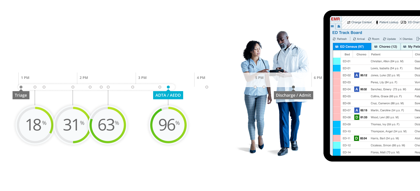 Choreo-ED™ transforms frontline clinical intuition of patient disposition into an objective, system-wide signal. By initiating workflows that follow, it enables coordinated downstream action, reducing emergency department length of stay and improving quality of care.